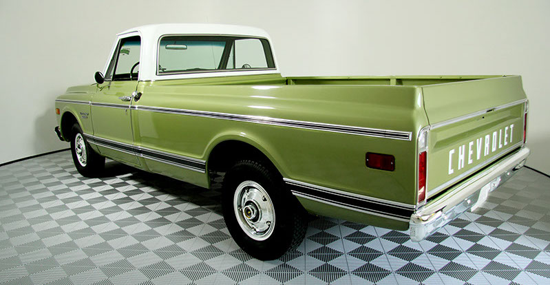 Check out this gorgeous, unmolested 1970 C10 Custom pickup. This truck looks great having been stored in a garage for most of its life. Coming from Oklahoma means it is rust free and it also happens to be accident free as well. This truck is a factory two-tone Medium Olive with a white cab over a green deluxe interior. It has factory air conditioning, factory power steering, and factory power brakes. The 350 V8 is strong running and sounds great through mellow dual exhaust. The 3-speed automatic is smooth shifting and all the gauges work! The truck was repainted 25 years ago in 1991 and still looks great today. The interior is mint and the under body looks like new! The truck appears to be an original, honest truck and is largely untouched. This truck drives as well as any new truck and has the excellent ride this body style is famous for!